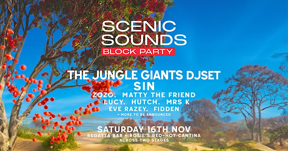 Join Scenic Sounds as they take over two iconic venues—Regatta Bar & Eatery + Rosie Red Hot Cantina, Takapuna — with a massive lineup featuring a mix of international and local talent, headlined by:
