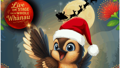 An Original Kiwi Christmas Tale for the Whole Whānau! Join us for a heartwarming Kiwi Christmas adventure that the whole whānau will enjoy. When Santa’s sleigh breaks down over Aotearoa, it’s up to a brave little pīwakawaka named Piri to save the day. With determination, quick thinking, and help from friends she meets along the way, Piri must find a way to get Santa flying again in time for Christmas. This original live show features catchy songs, colourful characters, and interactive fun for tamariki. It’s a feel-good, proudly local celebration of teamwork, kindness, and festive magic.