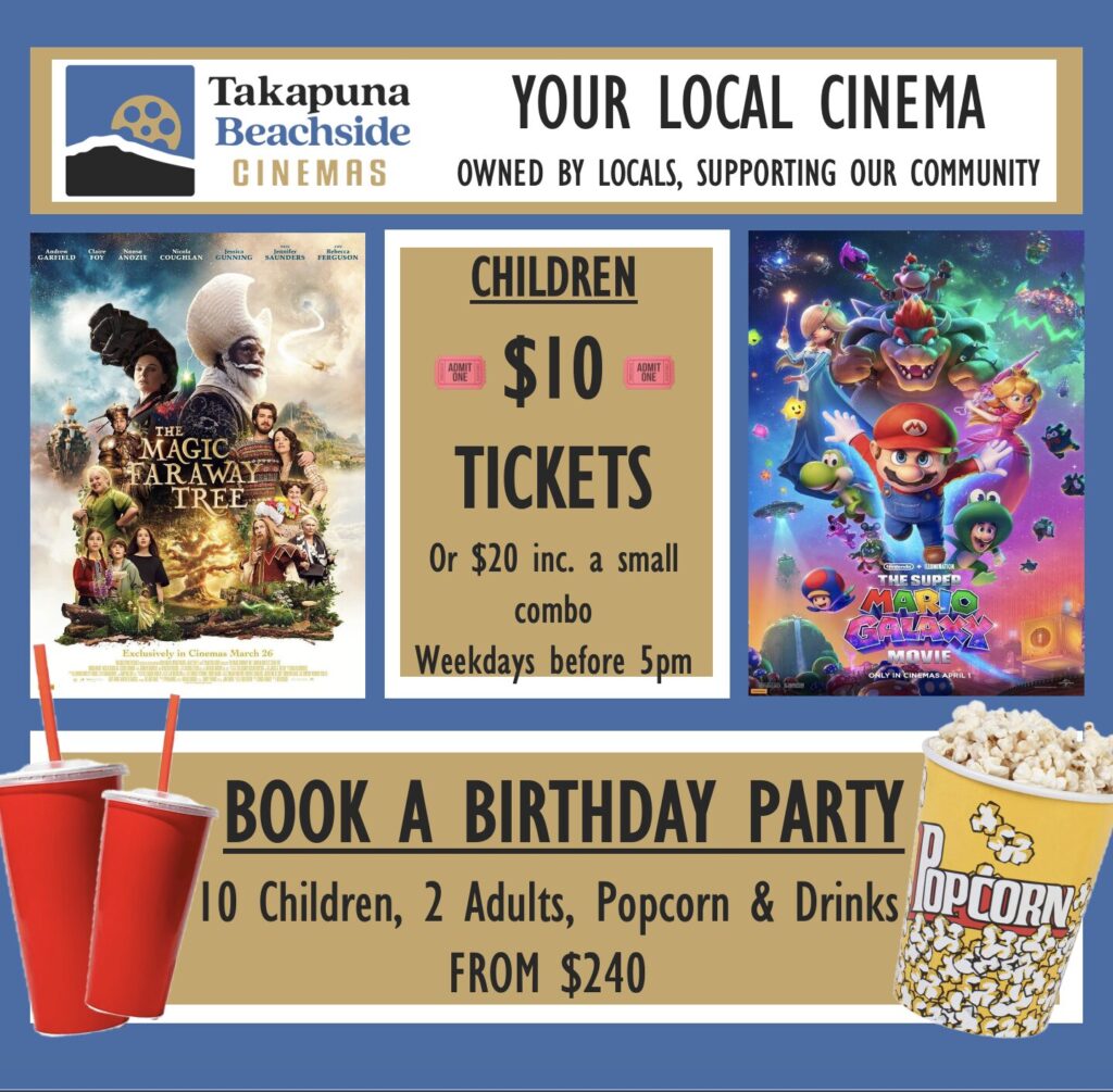 Parents – check out the specials and combo deals the Cinema are running, like the “Coffee Club” that includes a Coffee, Biscuit and Ticket for just $15 between 10am – 5pm, Monday-Thursday!