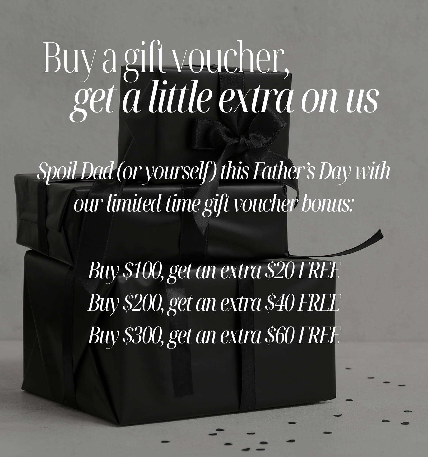 O-Studio Takapuna have gift cards available for the Dad’s looking for a little time to recover and recharge,