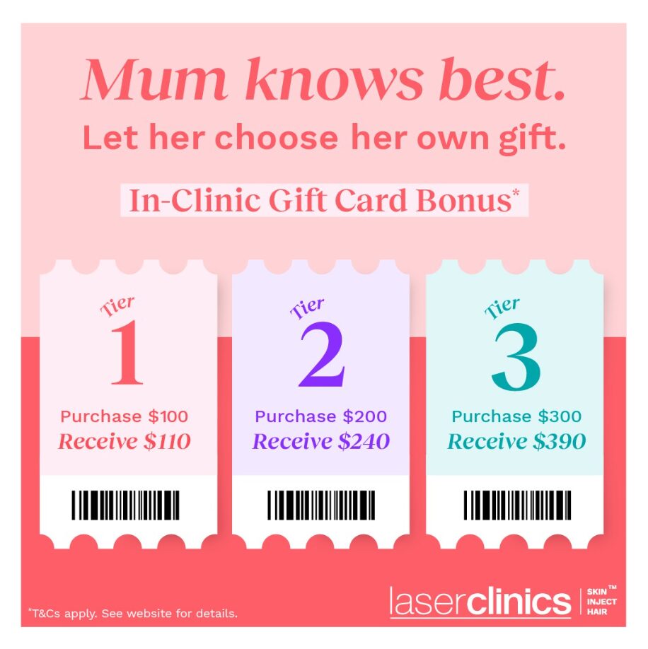 Mum knows best, right? So let her choose her own gift, with a Laser Clinic gift card, loaded with a bonus!